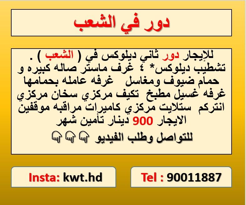 For rent in Al Shaab, a super deluxe floor with 4 master bedrooms, a large living room, and a fully equipped kitchen. rent is KD900. For contact
