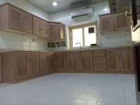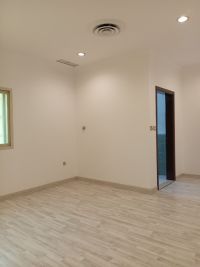 For rent: A full floor on the second level in Hitteen with deluxe finishing and an elevator. It consists of a living room with a guest bathroom and sink, 5 bedrooms including 1 master and 4 rooms each with a bathroom, a laundry room, a fully equipped kitchen, and two shaded parking spaces side by side. Rent is 750 Kuwaiti dinars. Brokers are prohibited.
