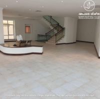 For rent: A villa in Mubarak Al-Kabeer, Plot 1, with two and a half floors including a basement with a swimming pool. The first floor has a main bedroom with a bathroom and a coffee sitting area, a main kitchen, and a guest bathroom. The second floor has four bedrooms with two bathrooms and a living room. The roof has a maid's room with a bathroom and a laundry room. Rent is 1750 KD. Code: 5763. For contact: Commercial License No. / 1234 - 2013.