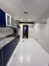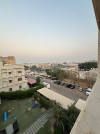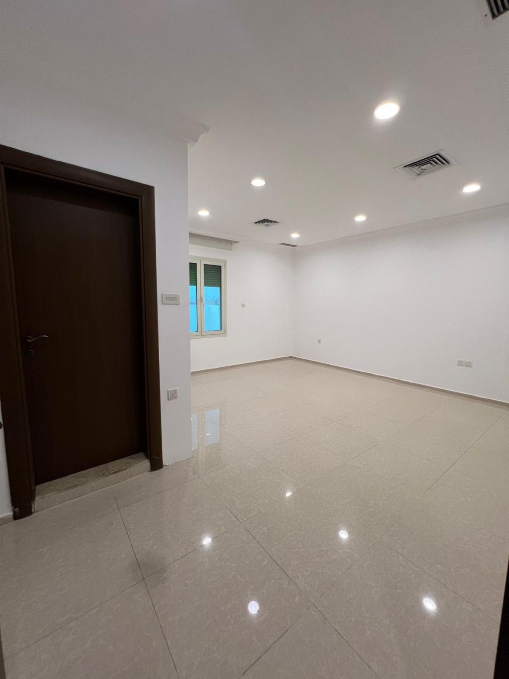 For rent in Al Khalidiya, third floor with elevator, 5 rooms with electric shutters, 3 bathrooms including 1 master, large living room 6.5*7, equipped kitchen, maid's room with its own bathroom, laundry area, and balcony. Rent is 900 dinars with two shaded parking spaces.