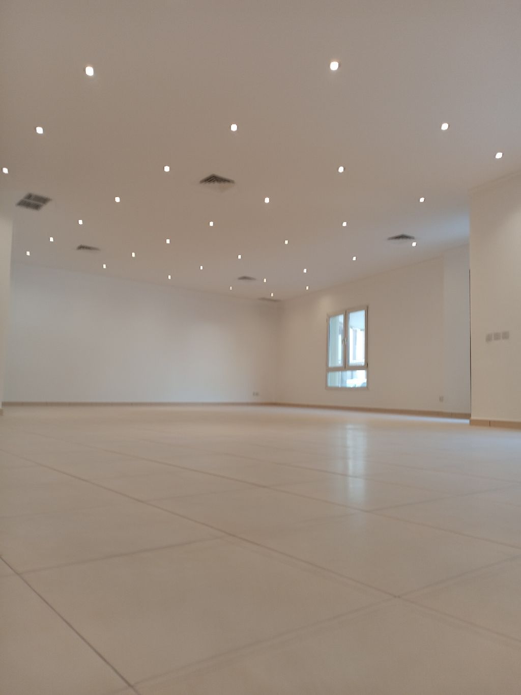 For rent: A villa in Al Zahra, Plot 8, suitable for two families. Super deluxe finishing, on a single street, comprising two floors with the possibility of separating them. Includes living rooms with guest bathrooms and washrooms, 7 bedrooms including 3 master bedrooms, two equipped kitchens (one upstairs and one downstairs), a maid's room with a bathroom, and a driver's room. With a swimming pool and shaded parking spaces. Rent is 1900 Kuwaiti dinars. Brokers are prohibited.
