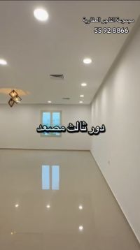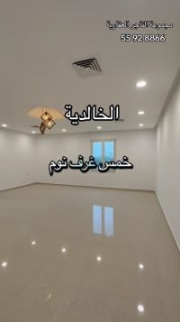 For rent in Al Khalidiya, a five-room house with one master bedroom with an ensuite bathroom, four other bedrooms with two bathrooms, a living room, a salon, a kitchen, a maid's room with a nearby bathroom, very close to the mosque. Two shaded parking spots behind the house facing the garden, three unshaded parking spots in the front yard, and a separate entrance from the house. 950 dinars.