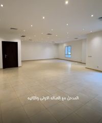 For rent, a villa in Al Zahra with two and a quarter floors, high-end finishing, consisting of 7 bedrooms, 3 living rooms, 2 equipped kitchens, a yard, a full domestic staff suite. Rent is 2000 dinars with a full month grace period. For contact.