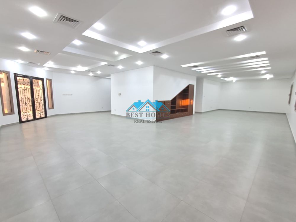 Spacious 5 Master Bedrooms Villa with Balcony in Hateen. Ground Floor Large Living Hall with Guest Bath, 1 Master Bedroom with Wardrobe, Kitchen, Private Parking, Driver Room. First Floor 4 Master Bedrooms with Wardrobe, Good Size Living Hall with Kitchen, Balcony. Second Floor Maid's Room, Laundry Room. 8 car parking spaces. rent KD2500