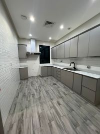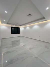 For rent: a floor in Kaifan. The house contains 4 rooms, a master bedroom, an elevator, a living room, a guest bathroom, a maid's room with a bathroom, two adjacent parking spaces, and a fully equipped kitchen. The price is 850 Kuwaiti dinars.