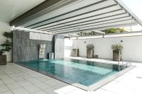 Exclusive villa in Shuwaikh, Kuwait - 5 master bedrooms with built - in wardrobes, spacious living and dining area, fully equipped kitchen, family room with breakfast kitchen. Large multi - seasonal balcony. Elevator. Service floor with 2 maids'rooms, hall, and equipped laundry room. Driver's room with shower and built - in wardrobe. Roof terrace with city views. Yard/ garden. Large outdoor swimming pool