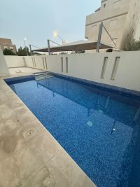 For rent: A residential villa in the Al-Salam area, on a main street and corner, with a front setback. It consists of two floors and an annex. The ground floor includes a diwaniya (reception area), swimming pool, and kitchens. The first floor has 4 master bedrooms and a maid's room. The second floor has 3 master bedrooms. A unique opportunity for those seeking luxury and distinction. For more details and video, please contact the number mentioned in the ad.