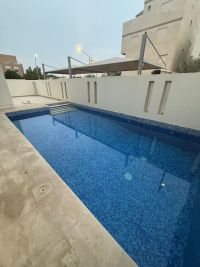 A luxurious villa in the Al-Salam area - corner with setback, consisting of 3 floors, with luxurious finishing. The ground floor has a spacious diwaniya, swimming pool, and equipped kitchens. The first floor has 4 master bedrooms and a living room. The second floor has 3 master bedrooms. Rent is 2800 Kuwaiti dinars.