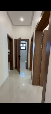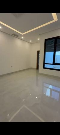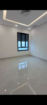 For rent: A full floor in Al-Masayel with a roof and balcony, VIP finishing, something elegant. 3 bedrooms including a master bedroom and two bedrooms with a shared bathroom, a large living room, a fully equipped kitchen, and a maid's room with its own bathroom. Features include: Blinds, an exhaust fan, central heating, and two parking spaces. Rent: 650 Kuwaiti Dinars.