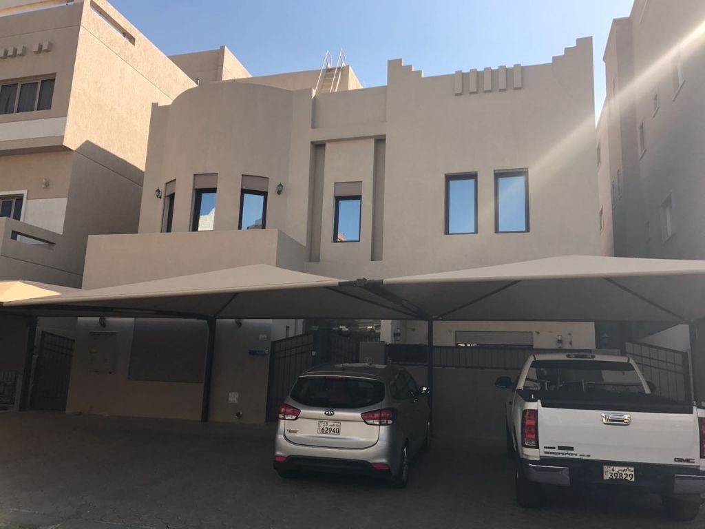 For rent, a villa in Abdullah Mubarak, super deluxe, consisting of two floors and a quarter: ground floor and first floor. The ground floor has two reception halls with a guest bathroom, a master bedroom, a fully equipped kitchen, a driver's room with a private bathroom and separate entrance. The house courtyard has a nice area. The first floor has 5 bedrooms: 3 master bedrooms and 2 bedrooms sharing a bathroom, plus a living room. The roof has a maid's room with its own bathroom and a laundry service room. Rent: 1300 Kuwaiti Dinars. Parking for 5 cars. For contact.