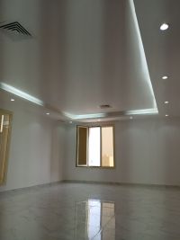 For rent: A floor in Al-Rumaithiya with a very large terrace-style roof and a large private roof for the floor. It consists of a hall with a bathroom and guest washroom, a majlis, 4 master bedrooms each with its own bathroom, a maid's room with a bathroom, a laundry room, a fully equipped kitchen, and two parking spaces. Rent is 900 Kuwaiti Dinars. Brokers are prohibited.