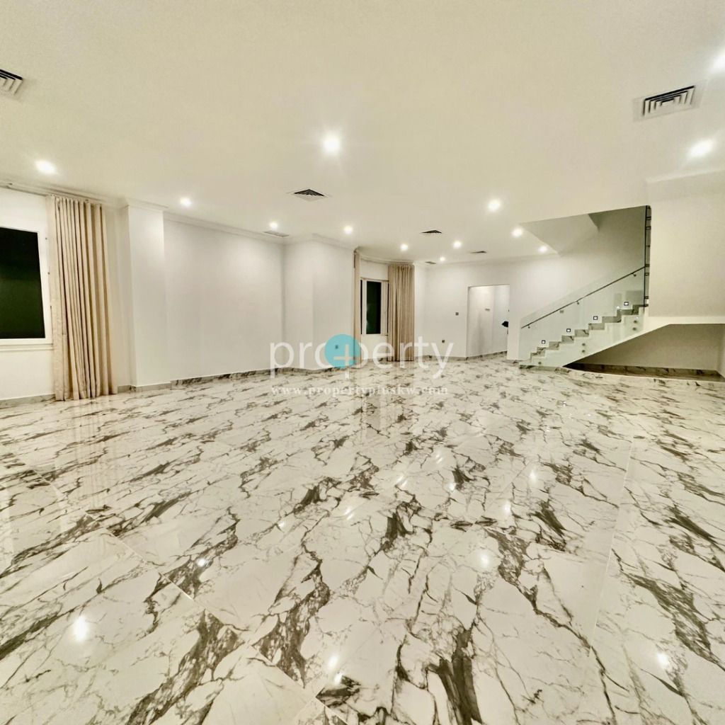Renovated five - bedroom villa for rent in Al Bidda, Kuwait. Ground floor spacious living room, guest toilet, one bedroom, closed kitchen, store room, laundry room, maid's room, garden. First floor living room, four master bedrooms, balcony, shutter - type windows. No elevator. rent KD2200