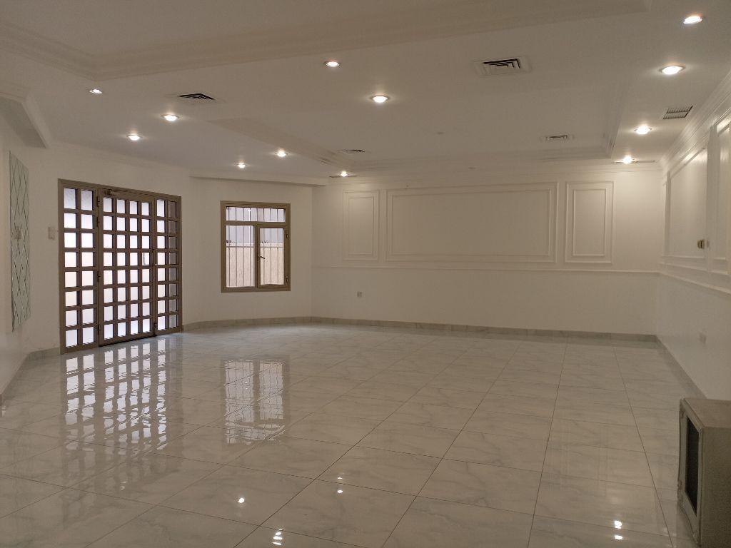 For rent: A full floor on the ground level in the Surra area, with a private and main entrance. It consists of a living room with a guest bathroom and sink, 5 bedrooms with closets (including one master bedroom and 4 bedrooms where every two rooms share a bathroom), a maid's room with a bathroom, a fully equipped kitchen, and two shaded parking spots behind each other. Rent is 800 Kuwaiti Dinars. Brokers are prohibited.