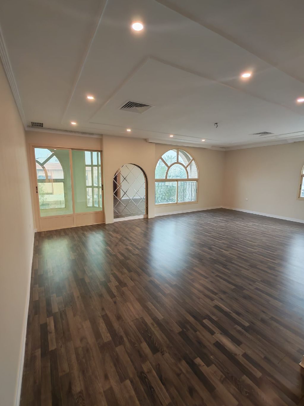For rent: A full floor in Al-Shamiya for expatriates and residents. First floor without elevator. Large spaces consisting of a living room and 5 bedrooms, including 4 master bedrooms. Equipped kitchen. Central air conditioning. Covered parking. Rent: 850 KD. Brokers are prohibited.