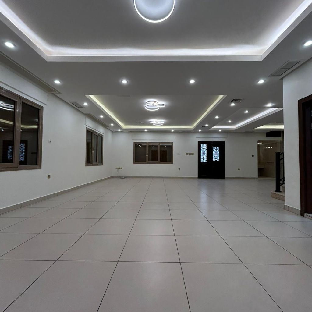 Triplex for rent in Al Salam, prime location, private entrance, easy access, super deluxe finishing, 3 floors. First floor: hall, kitchen, guest bathroom, storage room, courtyard. Second floor: 3 master bedrooms with walk-in closets. Third floor: bedroom, external roof with kitchen and barbecue area, maid's room with its own bathroom, laundry room, dedicated parking spaces, includes water, electricity, and AC maintenance. For families only. Rent: 1200 KD, security deposit required.