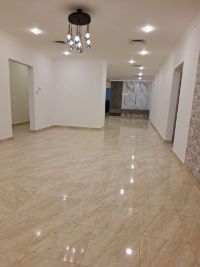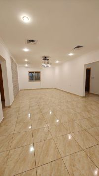 For rent: A floor in Bayan with a private entrance, located on a main street, first floor. There is an elevator. It consists of a large hall with a bathroom and guest sink, 6 bedrooms (including 2 master bedrooms and 4 bedrooms, with every two bedrooms sharing a bathroom), a fully equipped kitchen, a laundry room, and 4 parking spaces (with the possibility of parking 4 more cars behind them). Rent is 900 Kuwaiti dinars. Rent prohibits intermediaries.