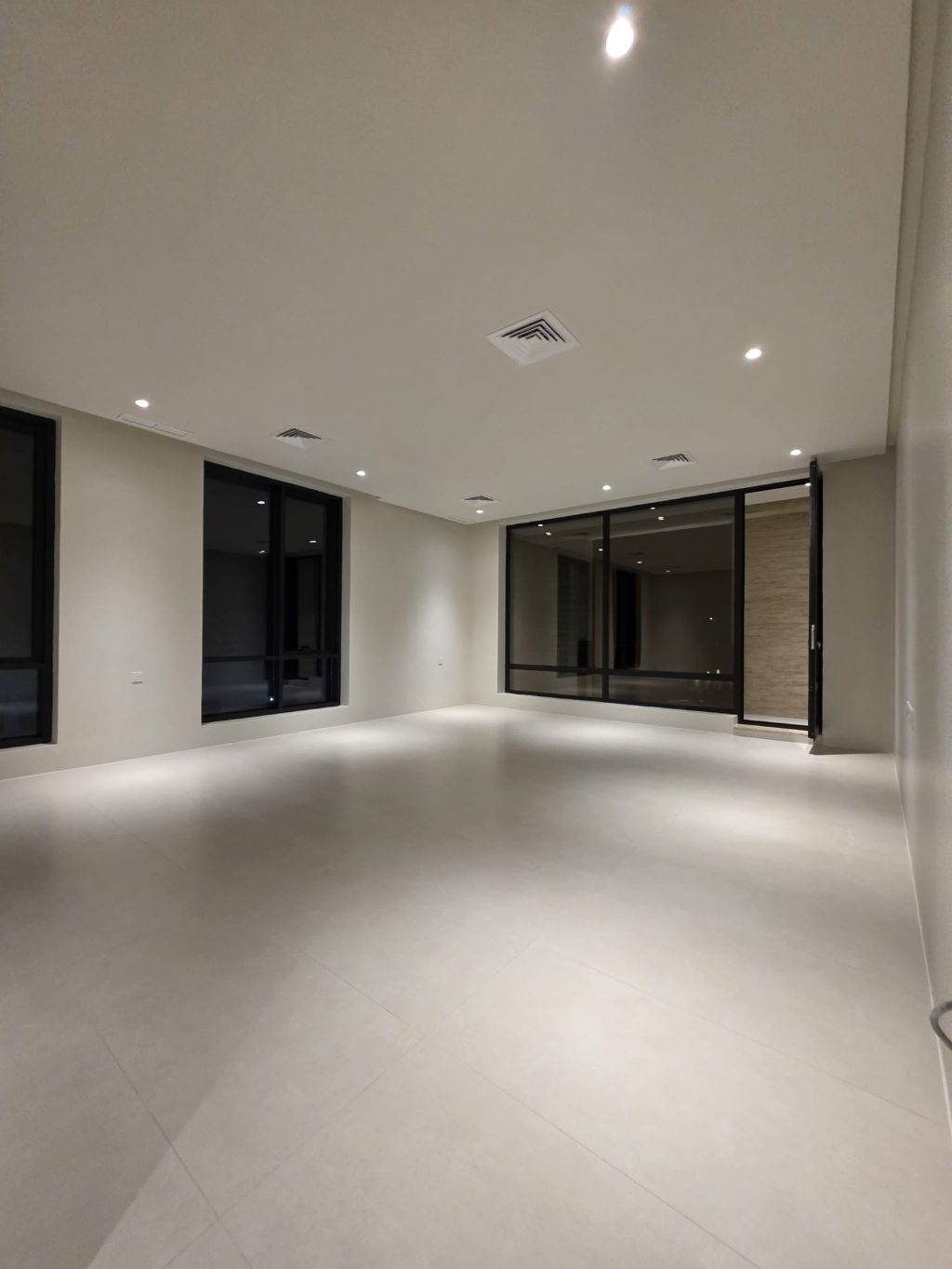 A floor for rent in Al-Rumaithiya, 4 rooms for expatriate families only. It consists of a large living room, 2 master bedrooms, 2 bedrooms with a bathroom and kitchen, a maid's room with a bathroom, and 3 parking spaces. Rent is 850 dinars, security deposit of one month, and agency commission of half a month. License number 2024 / 25160, commercial registration number 503374.