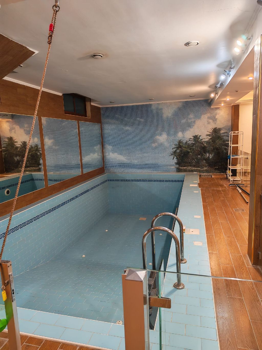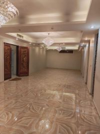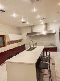 For rent: A duplex in Al Zahra with a private swimming pool, a courtyard, and a guest diwaniya with a bathroom and laundry facilities. It includes a ground floor and a basement with deluxe finishing, two living rooms, 5 master bedrooms, 3 kitchens (1 main kitchen + 2 preparation kitchens), and a separate driver's room with a bathroom and private courtyard, plus two parking spaces. Rent is 1400 Kuwaiti Dinars. Brokers are prohibited.