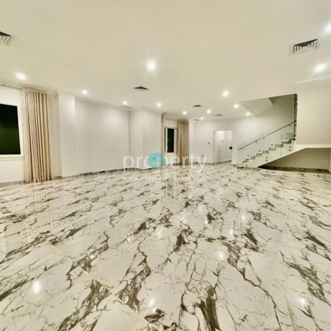 Ground Floor Spacious living room, guest toilet, diwaniya, closed huge kitchen, laundry room, maid's room with bath, driver's room, store room, two bedrooms with two bathrooms. First Floor Living room, six bedrooms (two master bedrooms, four bedrooms with two bathrooms) two kitchens, balcony, elevator, garden, shaded parking. rent KD2000