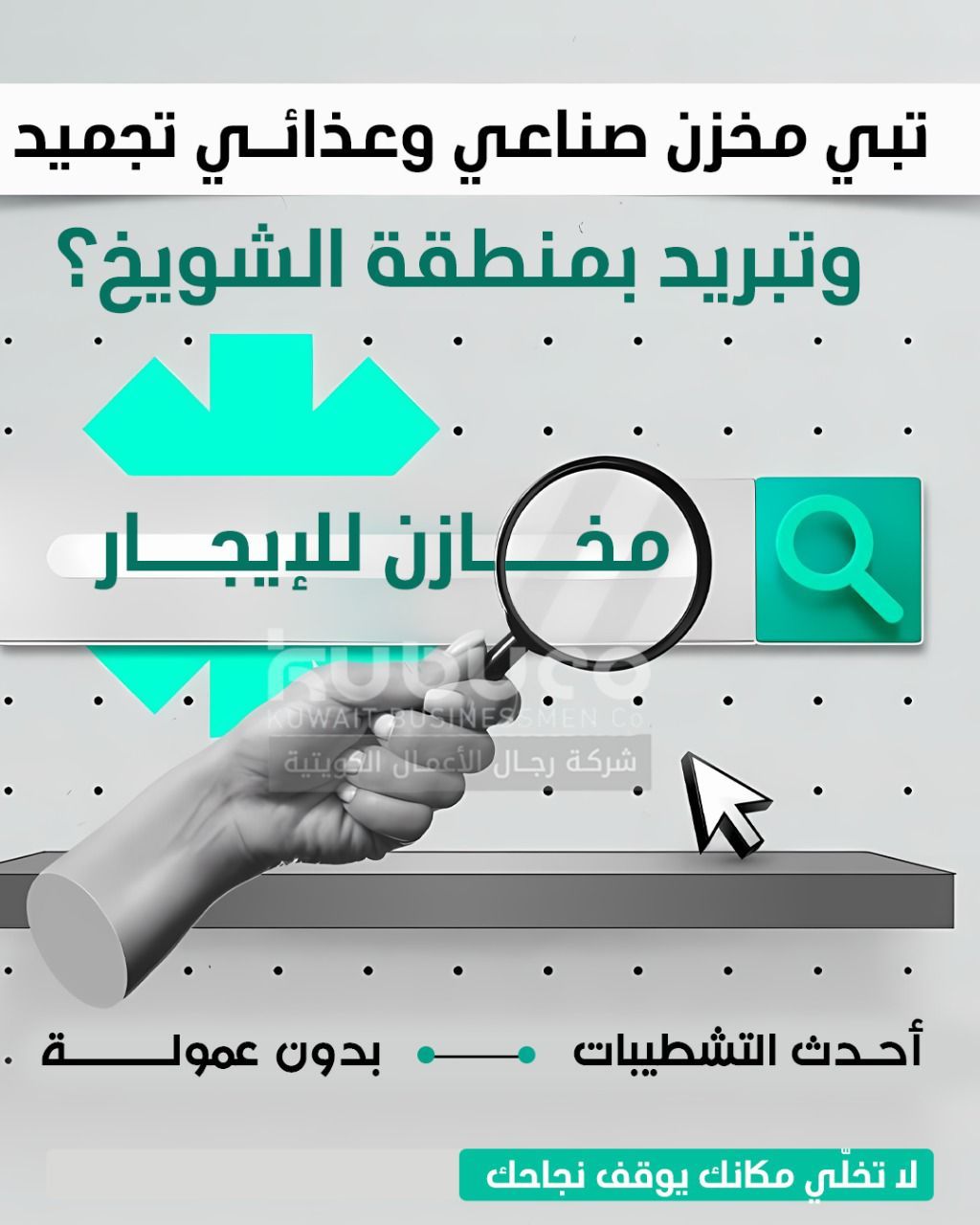 مخازن غذائية وصناعية للإيجار في الشويخ، مساحات تبدأ من 30 متر مربع، كاملة التشطيبات والخدمات، منزل سهل لنزول السيارات، الأسعار قابلة للتفاوض، بدون عمولة، بدون خلو، للاستفسار