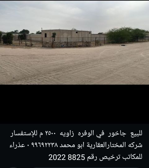 For sale a corner plot in Al Wafra,250 SQM. For inquiries, contact Al Mukhtar real estate Company, Abu Muhammad, Adhra'for offices, license number 20228825