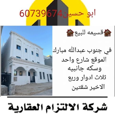A plot for sale in South Abdullah Mubarak. The location is on a street with a side alley. The area is 400 SQM. It has three and a quarter floors, with two apartments on the last floor