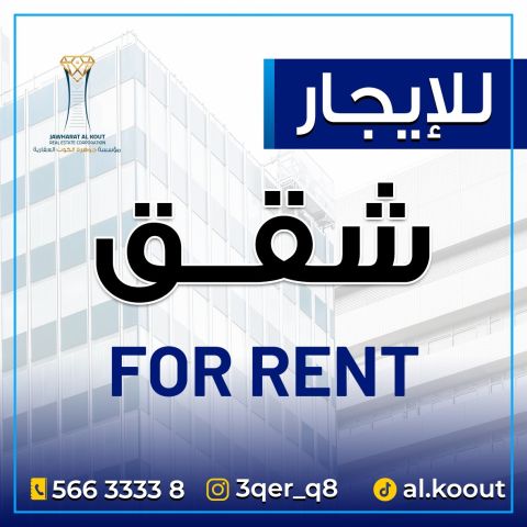 للإيجار، تشطيب جديد، أول ساكن، شقق في منطقة أبو فطيرة، ثلاث غرف واحدة ماستر وغرفتين بينهم حمام + غرفة خادمة مع حمامها ومطبخ مجهز بالكامل. الإيجار 530 دينار كويتي
