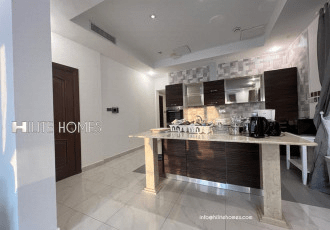 Hilight Homes proudly presents this charming, modern, and fully furnished sea-view floor in Abu Al Hasaniya. It features two master bedrooms with wardrobes, one bedroom with a shared bathroom and wardrobes, a spacious open kitchen, a living area, a dining area, a maid's room with a bathroom, a laundry area, a guest bathroom, and a balcony with a partial sea view. The unit is available for rent at 1100 Kuwaiti Dinars. Agency fees apply.