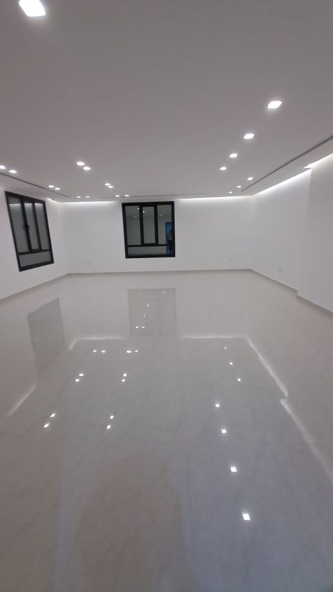 للإيجار شقة في الدور الأرضي في المسايل، تحتوي على 4 غرف نوم منها غرفتان ماستر، صالة كبيرة، مطبخ مجهز بالكامل، غرفة خادمة مع حمامها الخاص، وغرفة غسيل. الإيجار 850 دينار كويتي. موقفين للسيارات جنبا الى جنب
