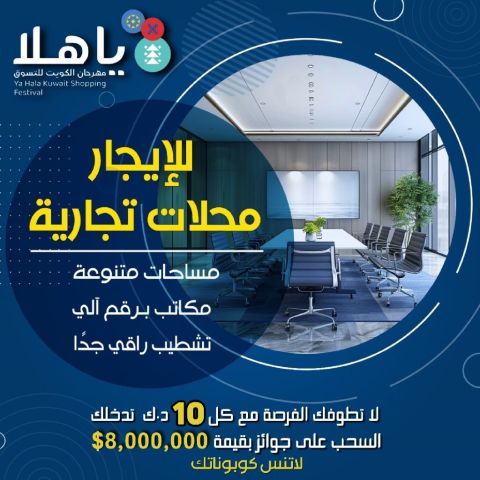 Looking for a finishing office at a suitable price. In the capital. Salmiya. Hawally. Various areas. Book now and rent your office and enjoy the free month offer. The latest finishes. And the most prestigious locations without commission