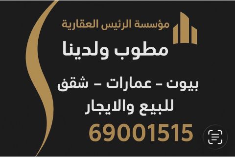 5 غرف نوم رئيسية في الطابق الأرضي للإيجار في المسايل. صالة واسعة، خمس غرف نوم رئيسية، دورة مياه للضيوف، غرفة خادمة مع حمام ملحق، منطقة غسيل، مطبخ مغلق، مدخلان خاصان، فواتير الكهرباء والماء مشمولة، ثلاث أماكن لوقوف السيارات، الإيجار 1000 دينار كويتي. تنطبق الشروط والاحكام. رسوم الوسيط ووديعة قابلة للتطبيق. رقم الترخيص 2024 / 25805. رقم السجل التجاري 509152