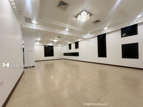 One master bedroom, two bedrooms with a common bathroom, a maid's room with an attached bathroom, a living area, guest bathroom. Available with and without a private entrance. rent is KD550 (negotiable)