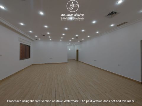 5 Master Bedrooms on the ground floor for rent in Al-Masayel. Spacious living room, five master bedrooms, guest toilet, maid's room with attached bathroom, laundry area, closed kitchen, private two entrances, electricity and water bills included, three parking spots, rent KD1000. Terms and conditions apply. Realtor fee and deposit applicable. License Number 2024/ 25805. Commercial Registration