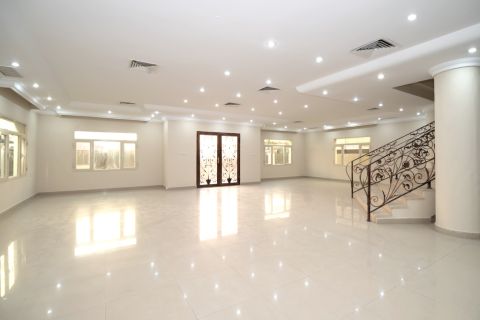 A beautiful villa for rent in Al Zahra, Kuwait - 5 bedrooms, 5.5 bathrooms, a spacious living and dining area with a representative staircase, a large kitchen, a small kitchen, and a family room. A diwaniya with a guest toilet and an additional entrance. Rooms for domestic workers and a driver, and a laundry room. A private yard. A shaded parking area for 4 cars. Rent is 2000 Kuwaiti Dinars per month. Please contact Horizon Q8 Real Estate Company. A security deposit equivalent to one month's rent.