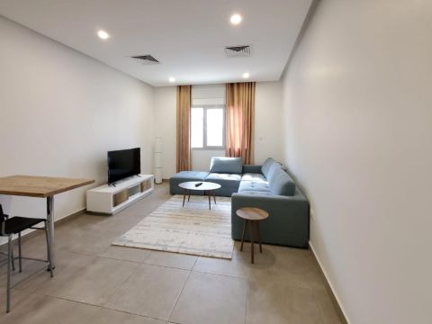 In Salmiya, a large furnished apartment with one bedroom and amenities, one and a half bathrooms, a living room, a kitchen, a shared pool, and a gym is available for rent starting from 450 Kuwaiti Dinars per month. For residents only. Contact Horizon Q8 Real Estate Company. A security deposit equivalent to one month's rent and real estate fees equal to half a month's rent are required.