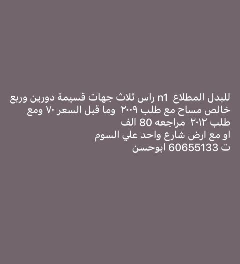 Wanted Land in Al - Mutlaa, with a street and a side street, from 2012 or earlier. Willing to pay the market price difference. Contact Abu Hassan