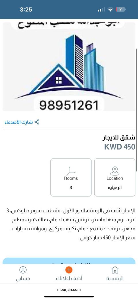 For rent in Cordoba, address: Plot 2, description: second floor with elevator (deluxe finishing). It consists of 4 bedrooms, including two master bedrooms and two bedrooms with a shared bathroom, in addition to a living room, equipped kitchen, maid's room with its own bathroom, air conditioning, central heating, shutters, shower box, and two parking spaces behind each other. Rent is 800 dinars, and we have more apartments and floors available.