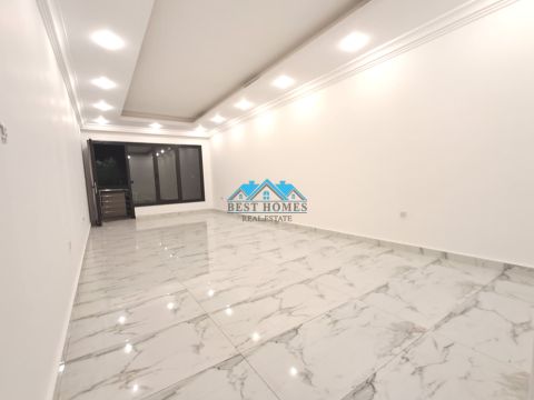 For rent in Al - Rumaithiya, deluxe furnished apartment with 3 bedrooms, including 1 master bedroom, a maid's room with its own bathroom, a large living room with a guest bathroom, a fully equipped kitchen, 4 bathrooms, an elevator, ceramic tiles, central air conditioning, satellite TV, a central filter and water heater, car parking spaces, and a large yard. rent is 450 dinars + agency commission