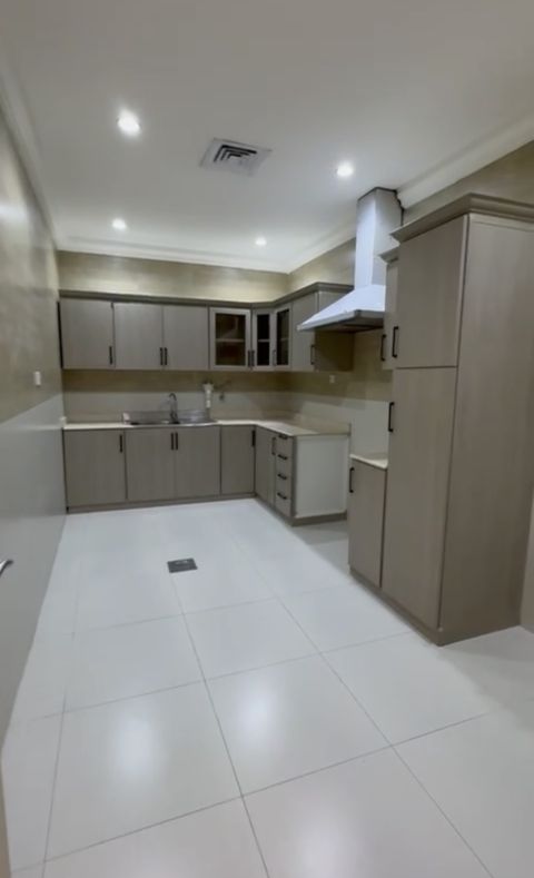 For rent in Al-Rumaithiya - First floor apartment - Super deluxe finishing - 3 master bedrooms - Living room with guest bathroom - Maid's room with bathroom - Separate laundry room - Equipped kitchen - Covered parking. Rent is 550 KWD. For inquiries.