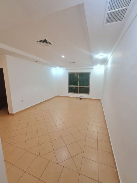 For rent in Salwa, a raised ground floor apartment with excellent spaces. 3 bedrooms including a master, living room, 3 bathrooms, maid's room, fully equipped kitchen, central air conditioning, ceramic tiles, and a shaded parking space. Rent is 370 Kuwaiti dinars.