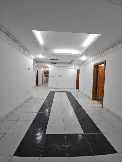 للإيجار شقة أرضية في سلوى، قطعة 8، بمساحات واسعة، 3 غرف نوم (1 ماستر) صالة كبيرة، مطبخ، غرفة عاملة منزلية مع حمام، تكييف مركزي، موقفين مظللين، ومصعد. الإيجار 460