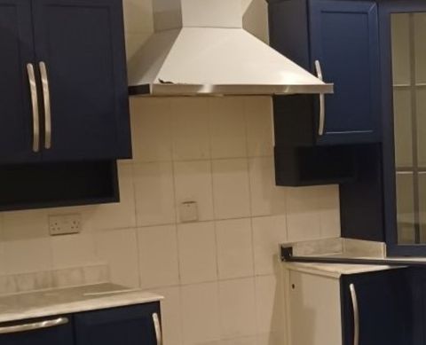 For rent in Salwa, Block 7, a first-floor apartment consisting of 4 rooms, all master bedrooms with a balcony, a maid's room with a bathroom, a fully equipped kitchen, and an isolated living room served by a guest bathroom. The apartment is renovated with air conditioning, water heater, exhaust fan, central satellite, super deluxe finishing, elevator, and 2 shaded parking spaces. Rent is 625 dinars.