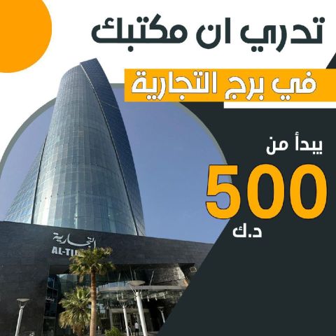 للإيجار مكتب في شرق برج التجارية بسعر 600 دينار فقط، متوفر برقم آلي وشهر مجاني بدون عمولة. للاستفسار
