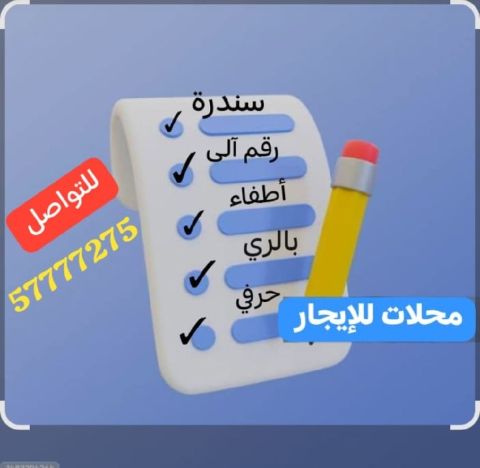 Shops for rent in Al-Rai, the capital, suitable for a printing press, carpentry, paper products, installation of air ducts, or a plastic soap or paper products factory. Areas start from 150 square meters with a sandra license, no commission, and two months free upon contract signing. For contact.