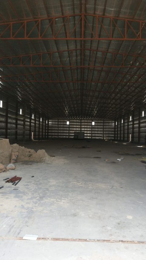 For rent a warehouse in Mina Abdullah, 2100 SQM, hangar type, covered, 8 meters height, insulated, Ministry of Electricity power supply, sprinkler system, fire suppression system, air conditioning, excellent location, rent 4 dinars per SQM