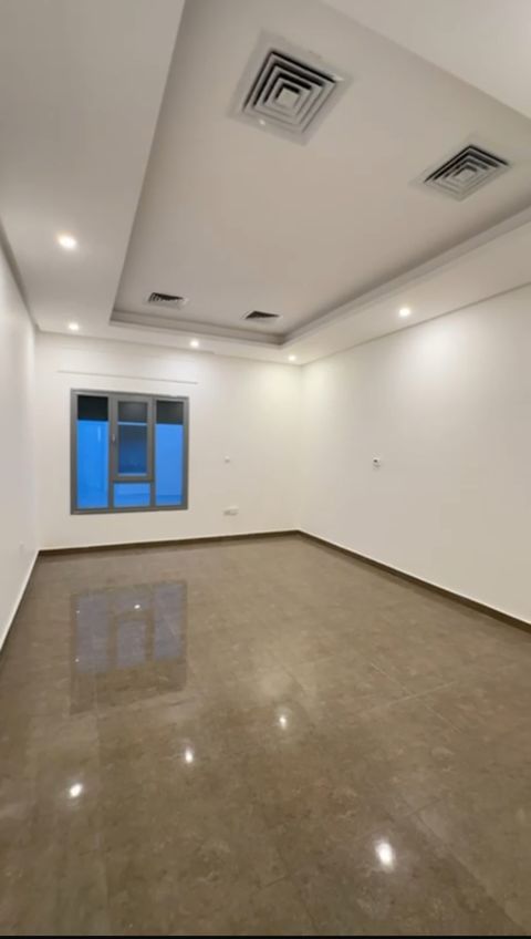 For rent: First floor, large windows, deluxe finishing in the Al-Masayil area, prime location opposite the mosque. 4 rooms, all master bedrooms - large living room - guest bathroom - equipped kitchen - maid's room with bathroom - laundry room - 2 adjacent parking spots - numerous parking spaces available opposite the house - Rent: 850 Kuwaiti Dinars, security deposit half a month.
