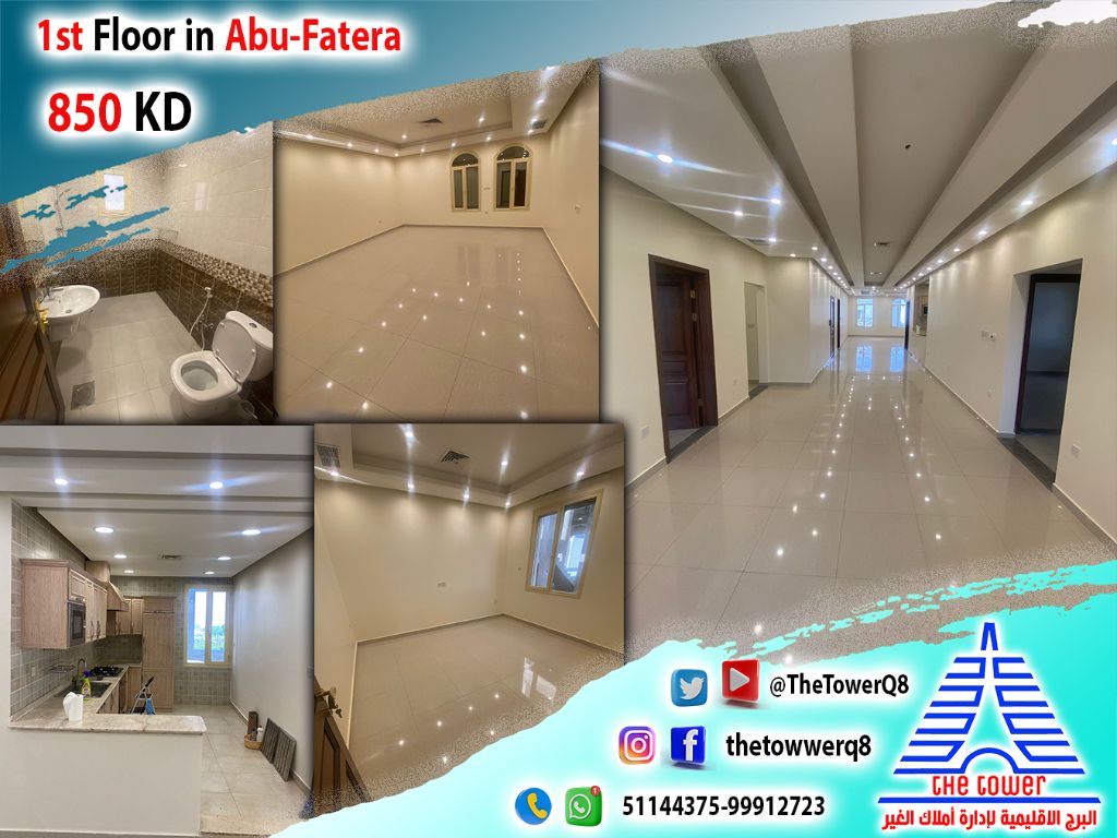 للإيجار في أبو فطيرة - دور أول مع بلكونة من فيلا بطن وظهر - شارع رئيسي - مدخل ومخرج سهل - 4 غرف نوم (منها غرفتين ماستر - غرفتين بينهما حمام) - صالة كبيرة مع حمام ضيوف - غرفة مربية مع حمام - مطبخ أمريكي مجهز بالأجهزة - مواقف مظللة. الإيجار 850 دينار كويتي. للاستفسار.