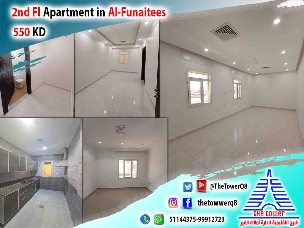 للإيجار في فنيطيس، شقة من فيلا زاوية - تشطيب سوبر ديلوكس - 3 غرف نوم ماستر - صالة كبيرة - غرفة مربية مع حمام - مطبخ مجهز - مواقف مظللة. الإيجار 550 دينار كويتي. للاستفسار.