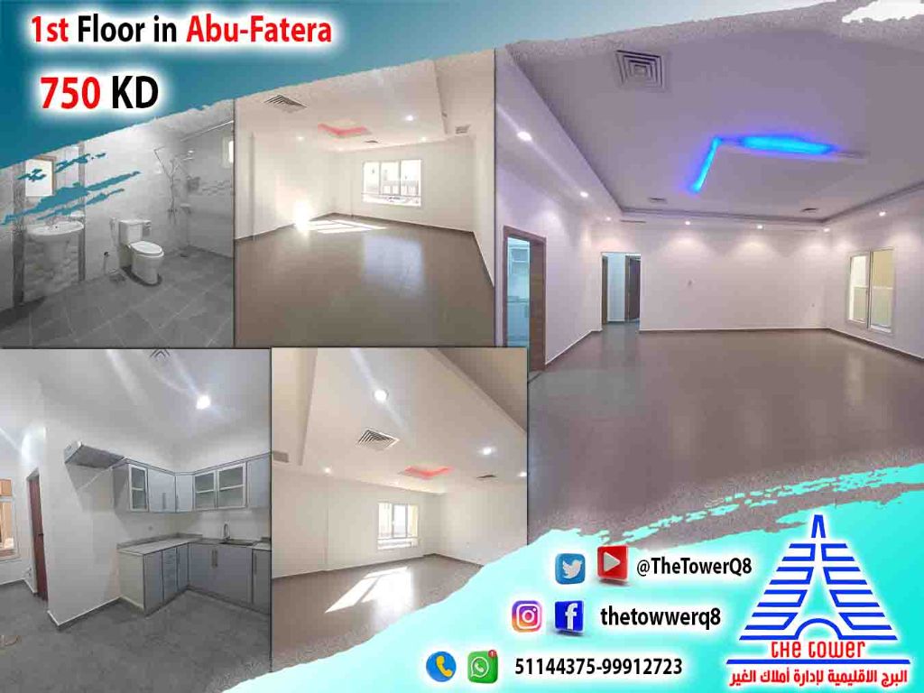 للإيجار في أبو فطيرة، دور أول مع بلكون - مساحات كبيرة - تشطيب سوبر ديلوكس - 4 غرف نوم (منها غرفتين ماستر - غرفتين بينهما حمام) - صالة كبيرة - غرفة مربية مع حمام - مطبخ مجهز - مواقف مظللة. الإيجار 750 دينار كويتي. متوفر غرفة سائق للإيجار بـ 50 دينار كويتي. للاستفسار.