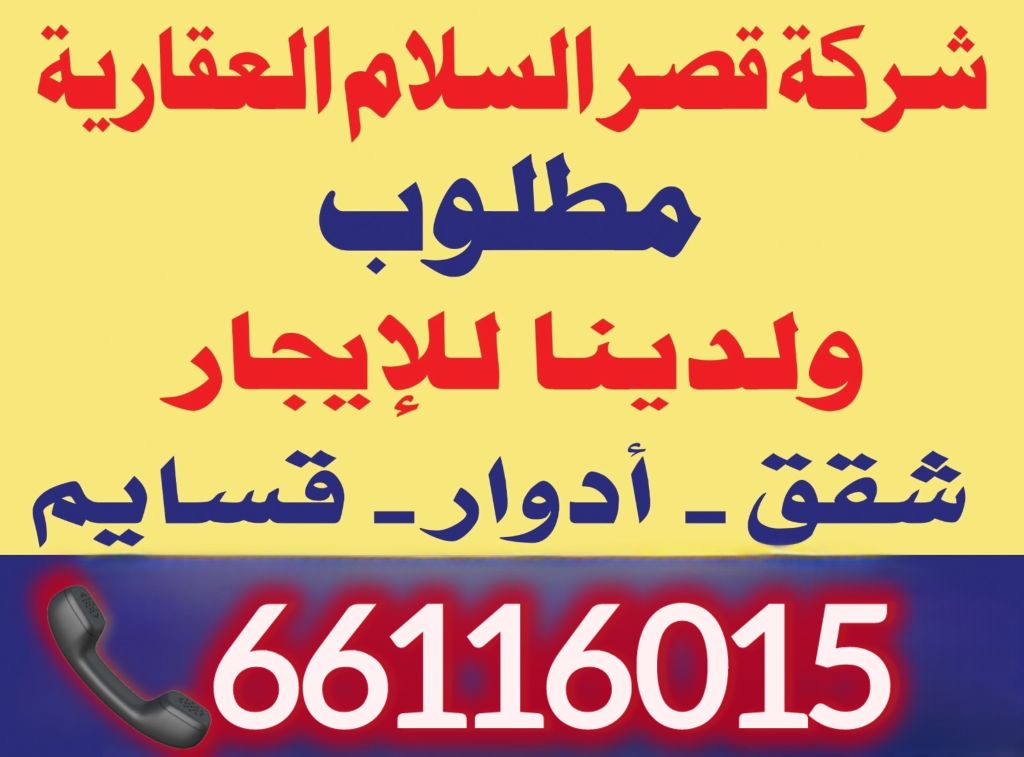 للإيجار شقة في الفنطاس ق2 / 2 غرفة منهم غرفة ماستر + 2 حمام + صالة + مطبخ مجهز + غرفة خادمة مع حمام + تكييف سنترال + الإيجار 330 دينار كويتي. الشقة بدون أثاث.